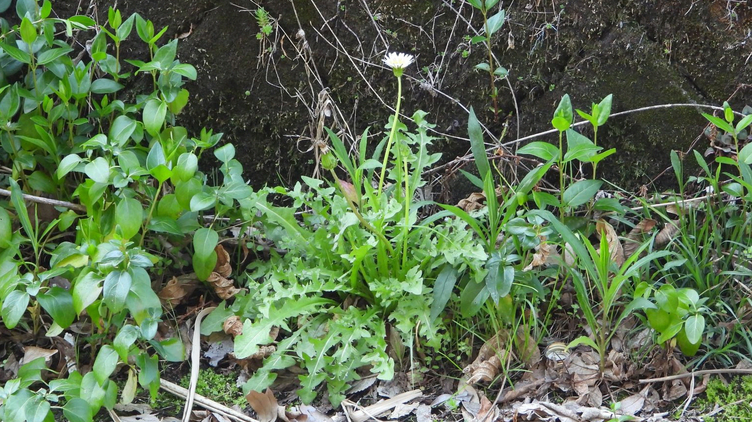⬇️ シロバナタンポポ 川の中で咲いていた。「子どもの森」ではまだ咲いていない。