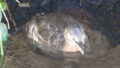 ⬇ オオシオカラトンボ?(メス) 川の真横の壁面に止まったので、乗り出すようにして写した。この写真の情報だけで名前を決めるには無理がありそうだが…。自信あり。