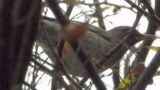 ⬇ メジロ 口元に黄色い花粉がついている。桜は鳥に受粉を助けてもらう鳥媒花のひとつ。
