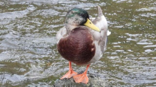 2025年10月3日 マガモ(境川) 日射しもなく歩きやすかったので、調子に乗って「宮久保橋」を経由して帰宅。散歩の距離が長くなるほど、野鳥との出会いも多くなるが、今日も今季初の「マガモ」に会えた。 ⬇️ カワセミ きょうは相沢川で4羽... 2025.10.03 アオモンイトトンボアキアカネアオサギキアゲハコノシメトンボシオカラトンボナツアカネカルガモカワセミキセキレイコサギハクセキレイマガモ